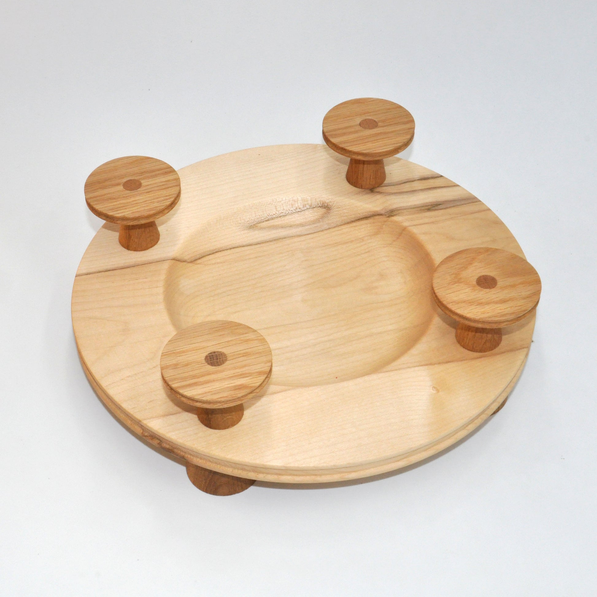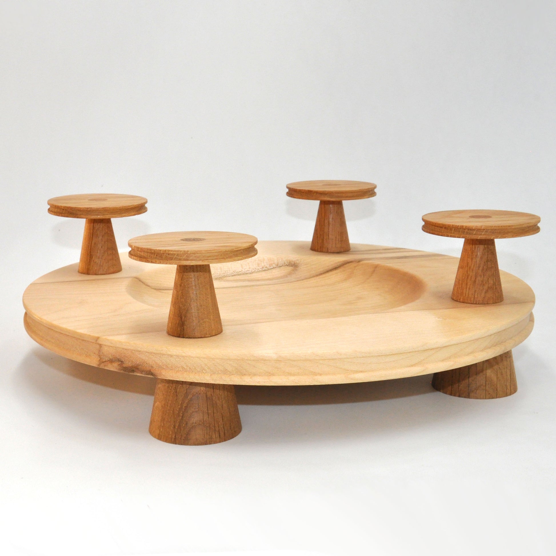 Die fein gedrechselte Holzschale (Ø 30 cm) mit harmonisch abgestimmten Holzfüßen bildet die perfekte Bühne für vier Kerzen. Mit einer Höhe von ca. 10 cm wirkt er modern, schlicht und dennoch festlich.