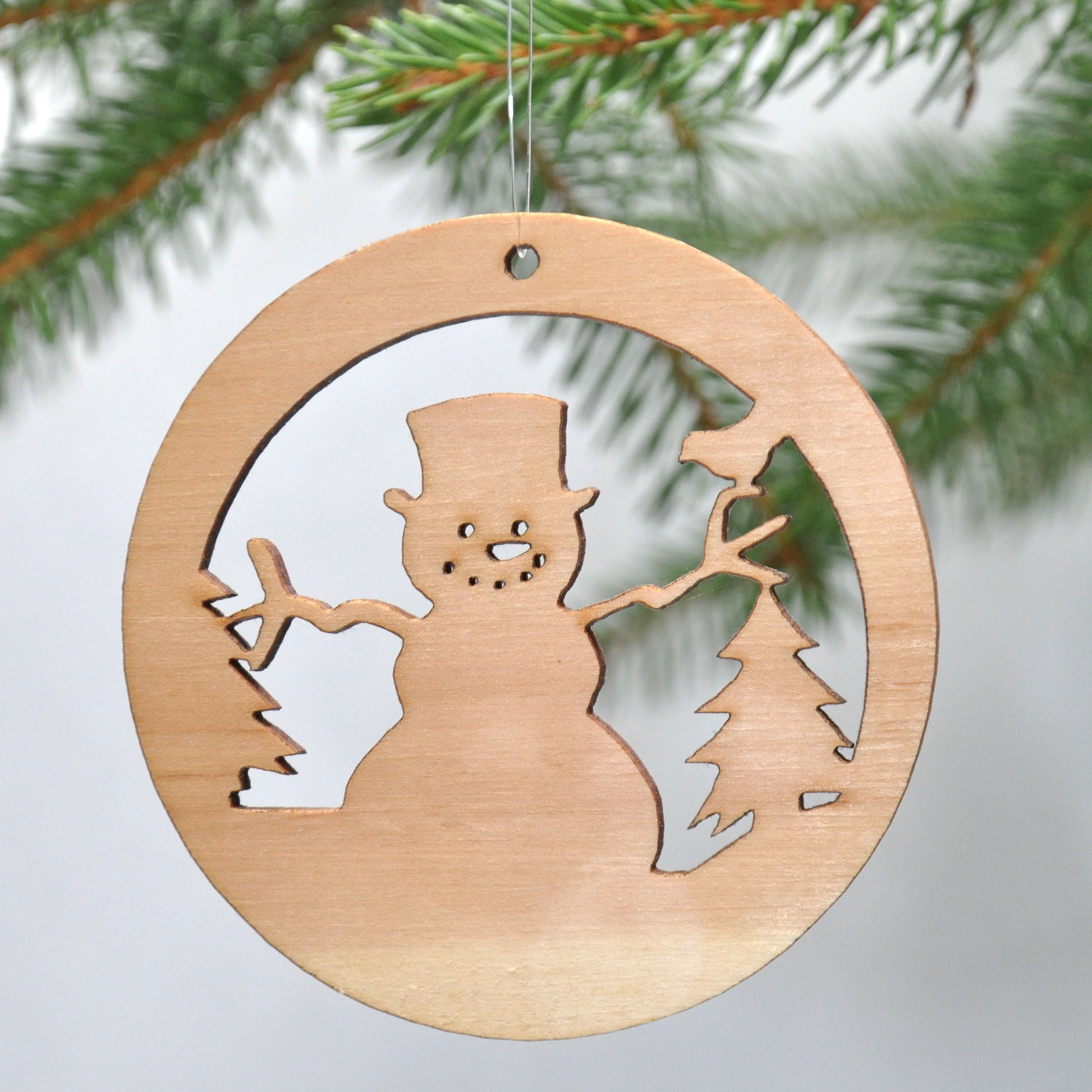 Die Motive Schneemann, Baum und Rentier bringen winterlichen Waldzauber an den Weihnachtsbaum.