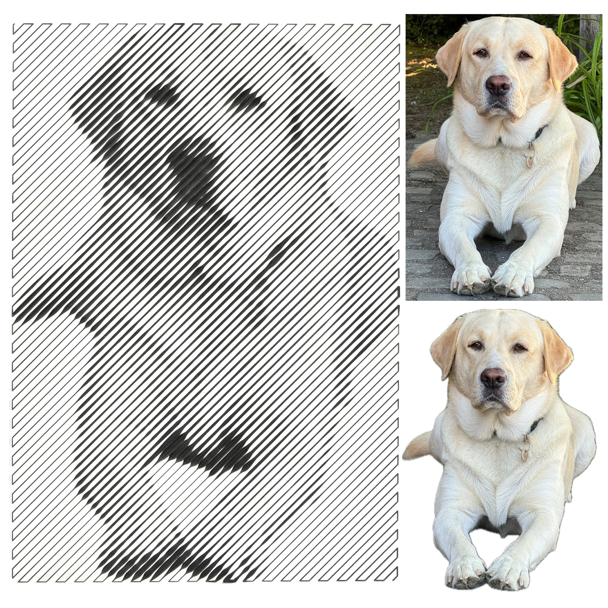 Dein Lieblingsbild wird mit modernster CNC-Technik in massives Holz – als faszinierendes 3D-Halbton-Relief. Aus der Nähe siehst du nur elegante Linien, aus der Ferne erkennst du plötzlich dein Motiv: dein Hund, deine Kinder, dein Partner, dein absoluter Lieblingsmoment.